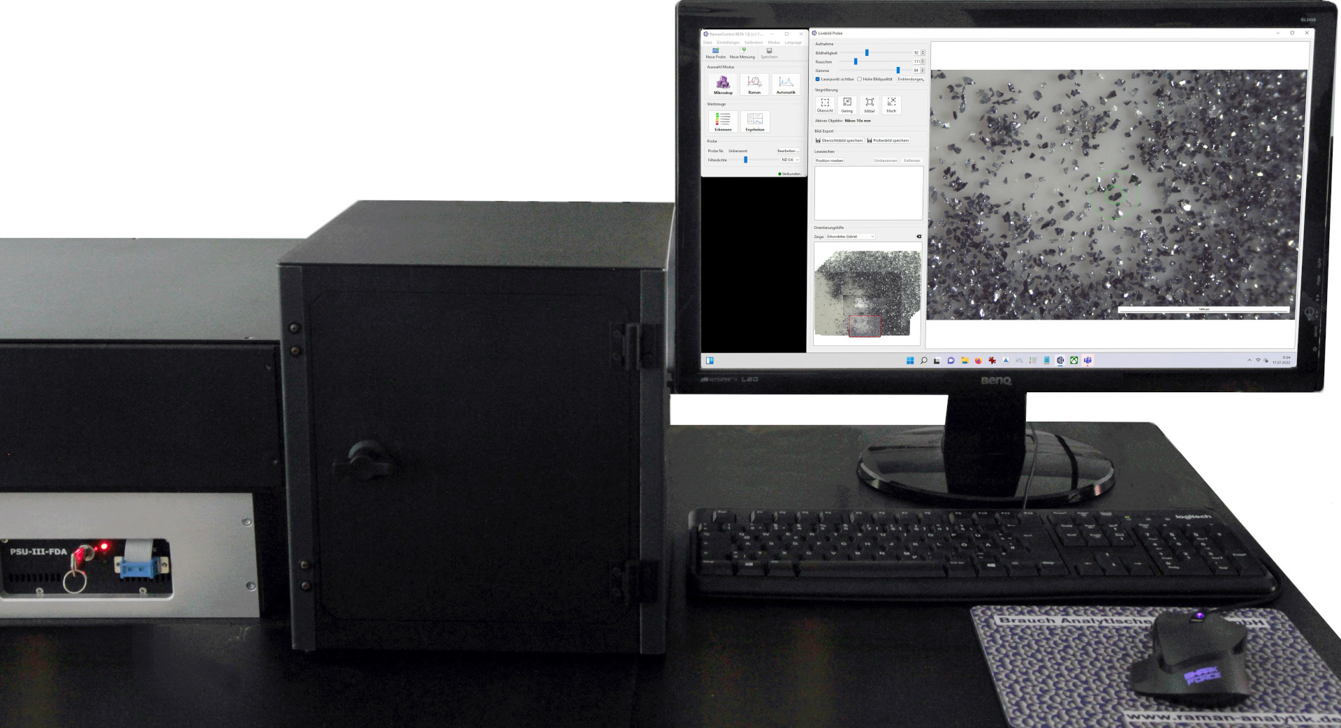 In addition to recording Raman spectra, the device also provides a high-resolution color image of the analyzed location on the sample.